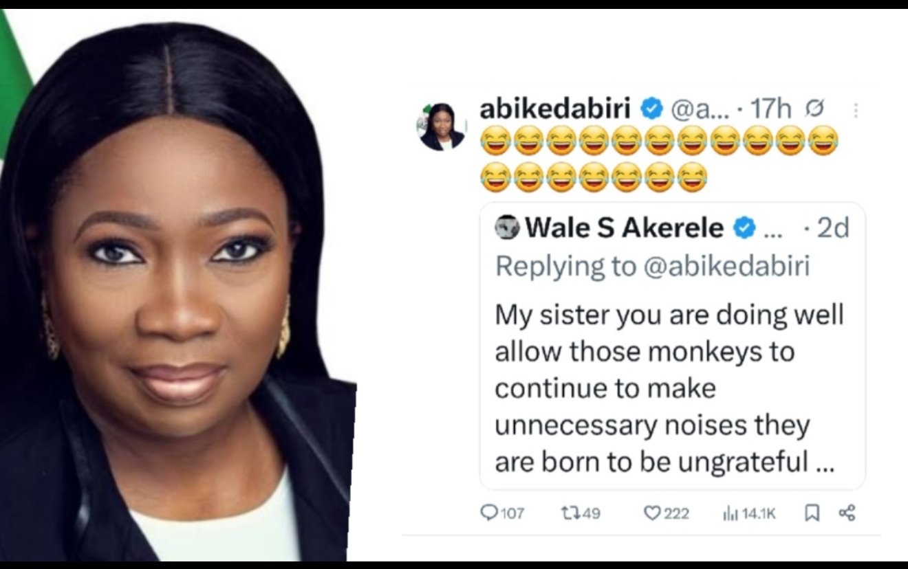 Some X users berated Mrs Dabiri-Erewa for amplifying a derogatory post calling Igbos monkeys, saying it further deepened divisive ethnic and tribal tensions.