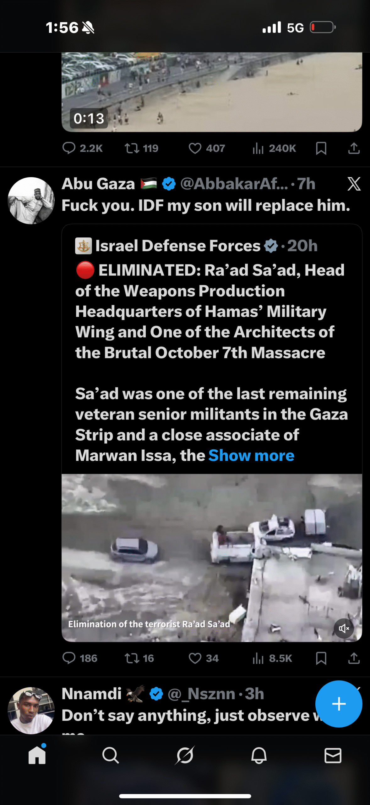 A Nigerian man who simply identified himself as Abu Gaza, with the user name on X @AbbakarAffan, has told the Israeli government that his son will replace Ra’ad Sa’ad, Head of the Weapons Production Headquarters of Hamas’ Military Wing and One of the Architects of the Brutal October 7th Massacre