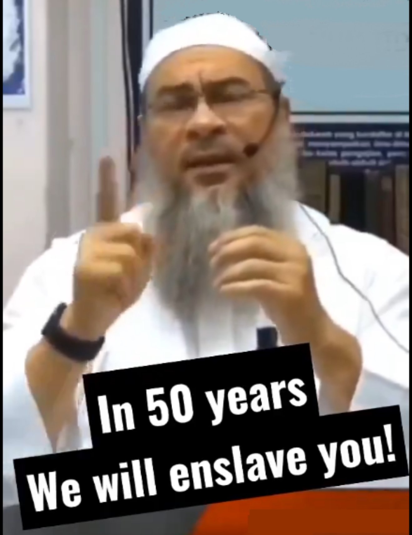 He, however, showed his disappointment in the current numerical strength of Muslims worldwide, while declaring that the Jihad could only be possible in about 40 to 50 years, when he believes that Muslims would be in the majority. “Maybe in the coming 40 to 50 years when Muslims become strong, as they’re supposed to be, and they’re focused Islamically, and Islamically-oriented,” he concluded.