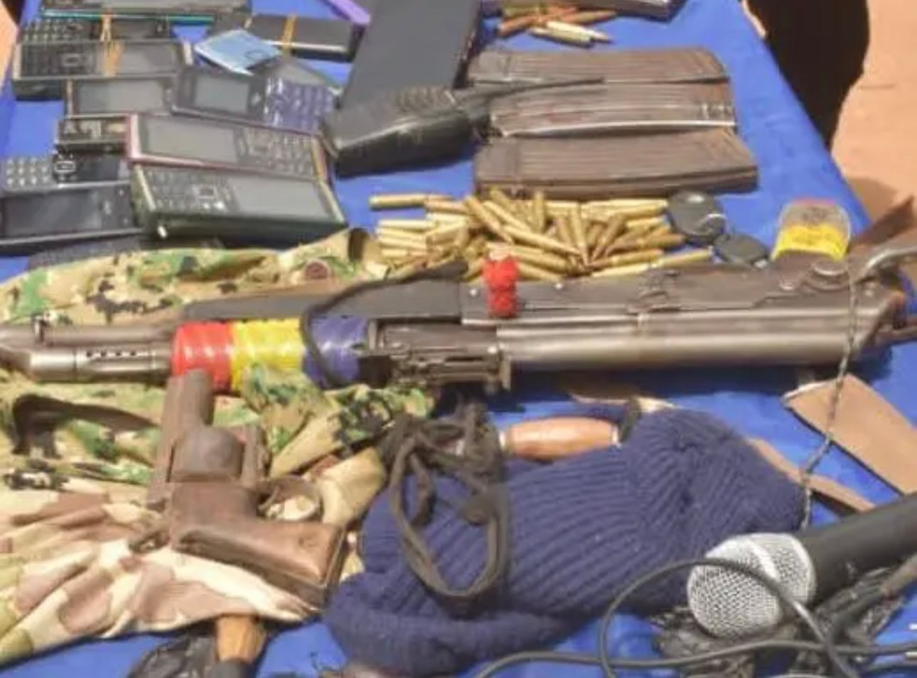 Exhibits recovered from the scene of the incident include; one (1) Type 06 rifle, three (3) AK-47 magazines loaded with 7.6mm ammunition, eighty other ammunition, camouflage uniforms and assorted phones.
